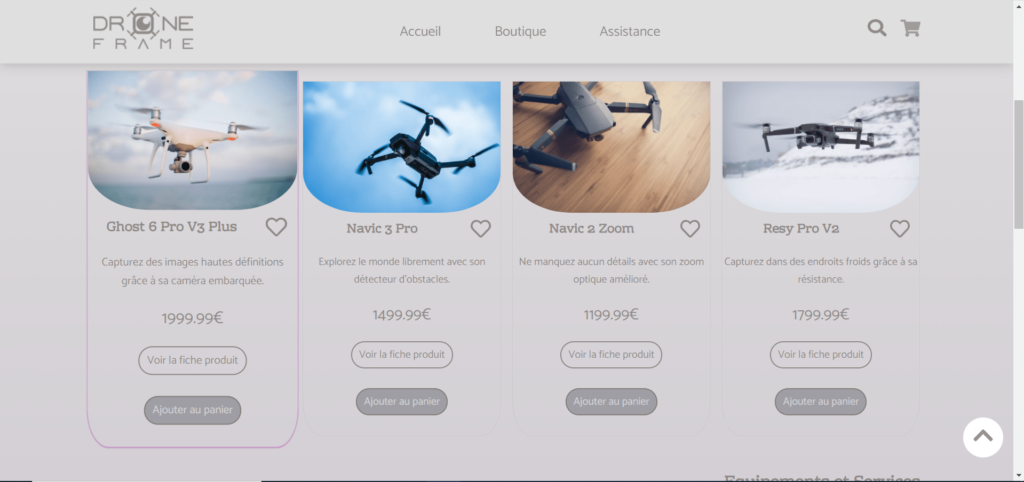 Il y avait d’abord le concept : je devais réaliser la page d’accueil d’un site e-commerce. J’ai donc choisit les drones, parce que les drones, c’est cool.