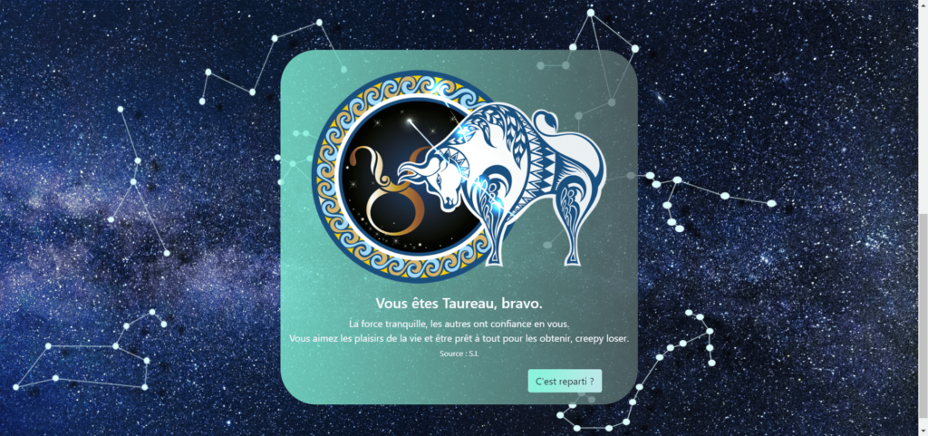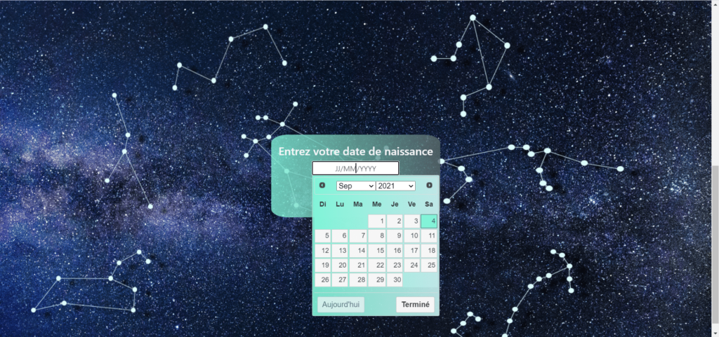 Comme mentionné au début, le concept du site est simple : on entre une date, on a notre signe du Zodiac.